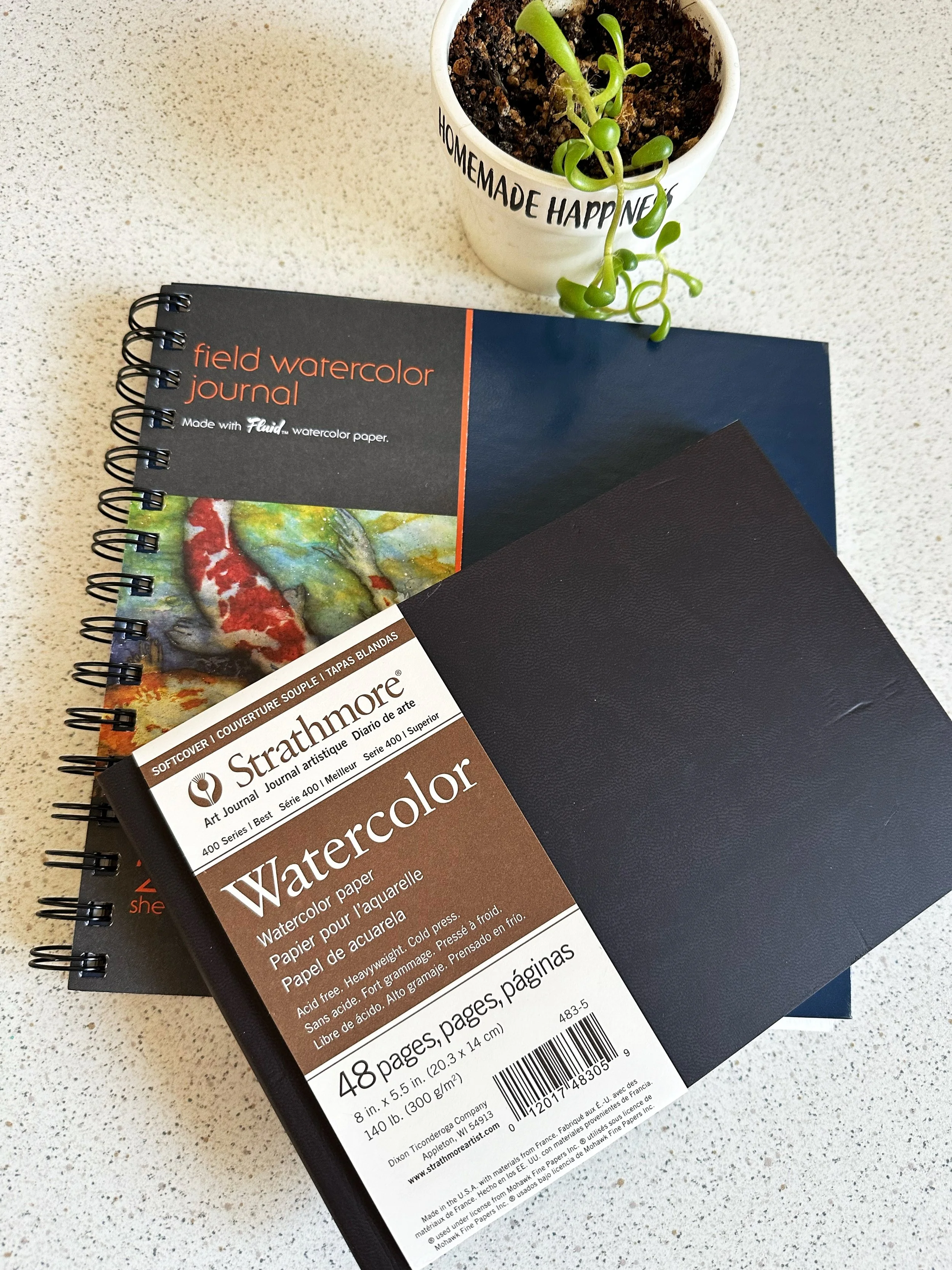 My go to is Strathmore watercolor sketchbook. I love the softbound book and it handle wet paint daily well.